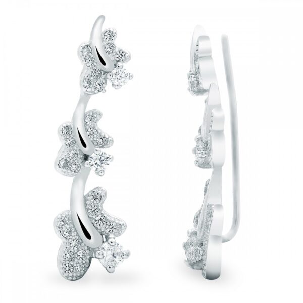 Kolczyki Nausznice Motylki wykonane ze Srebra Próby 925. Nausznice dodatkowo uszlachetnione warstwą rodu, ozdobione cyrkoniami. Nausznice to nietypowa, bardzo modna i wyróżniająca się ozdoba ucha. Nausznice nadają się nie tylko do codziennych stylizacji ale również na wieczorne wyjścia. Kolczyki Nausznica jest w stanie nadać charakteru nawet prostej stylizacji.