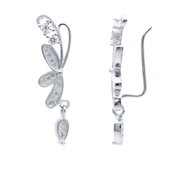 Kolczyki Nausznice wykonane ze Srebra Próby 925. Nausznice dodatkowo uszlachetnione warstwą rodu, ozdobione cyrkoniami. Nausznica ma wysokość 32mm. Nausznice to nietypowa, bardzo modna i wyróżniająca się ozdoba ucha. Nausznice nadają się nie tylko do codziennych stylizacji ale również na wieczorne wyjścia. Ta ozdobna biżuteria jest w stanie nadać charakteru nawet prostej stylizacji.