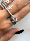 Pierścionek elastyczny kwiatek z kryształkami srebrny