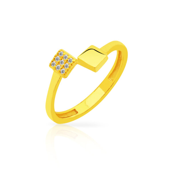 Pierścionek kwadraciki z cyrkoniami srebrny pozłacany