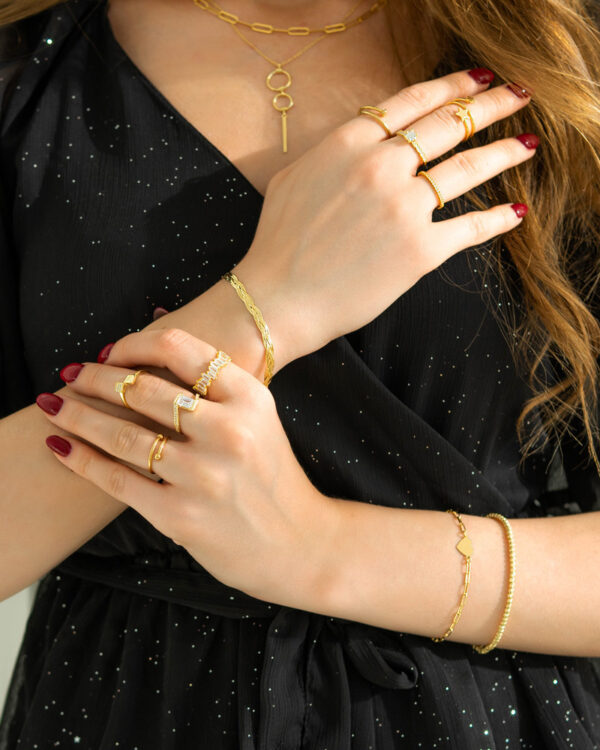 Pierścionek kwadraciki z cyrkoniami przepięknie ozdobi dłoń, nadając całości kreacji wyrazistości, a zarazem wyjątkowości. Stworzona z myślą o kobietach lubiących wyraziste, modowe dodatki. Będzie idealnym uzupełnieniem Twojej kolekcji biżuterii, świetnie prezentując się jako niezastapiony dodatek Twoich stylizacji.