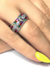 Pierścionek srebrny z kolorowymi i białymi cyrkoniami