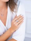 Biżuteria będzie przepięknie prezentowała się noszona samodzielnie, jak i w komplecie z kolczykami oraz zawieszką o podobnym wzorze dostępnymi w naszym sklepie.