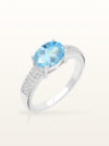 Pierścionek srebrny z niebieskim topazem oraz cyrkoniami