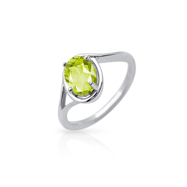 Pierścionek srebrny z oliwinem wykonany z najwyższej próby srebra 925 – bez niklu, nie uczula. Biżuteria dodatkowo pokryta 3 warstwami szlachetnego rodu. Pierścionek ozdobiony naturalnym oliwinem o szlifie owalnym o wielkości 6x8mm. Wyrób jubilerski wysokiej jakości wykonany przez mistrzów jubilerstwa z ogromną precyzją oraz dbałością o detale.