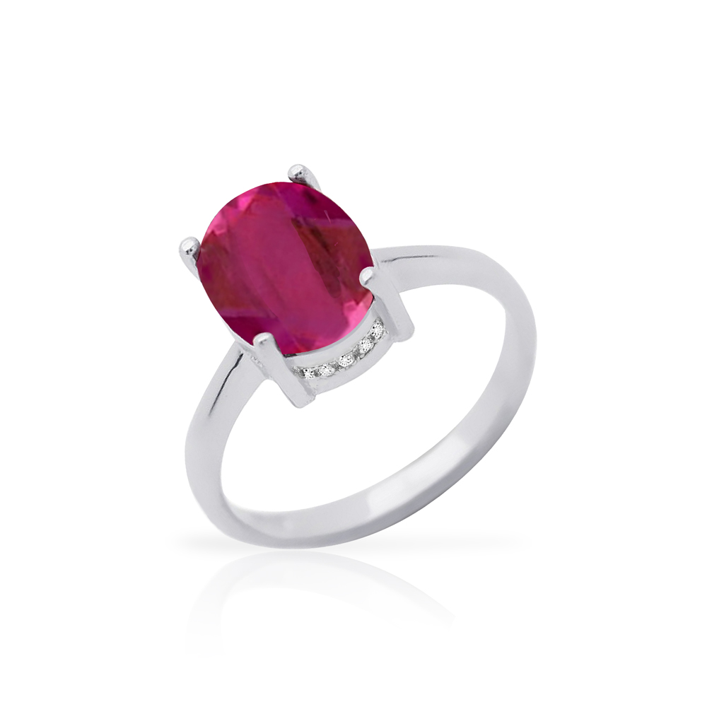 Pierścionek srebrny z rubinem i delikatnymi cyrkoniami wykonany z najwyższej próby srebra 925 – bez niklu, nie uczula. Biżuteria dodatkowo pokryta 3 warstwami szlachetnego rodu. Pierścionek ozdobiony naturalnym rubinem o szlifie owalnym o wielkości 8x10mm oraz cyrkoniami. Wyrób jubilerski wysokiej jakości wykonany przez mistrzów jubilerstwa z ogromną precyzją oraz dbałością o detale.