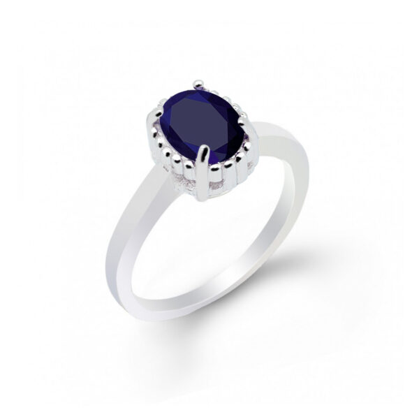 Pierścionek srebrny z szafirem zachwyca klasyczną formą i głęboką, niebieską barwą naturalnego kamienia. Owalny szafir osadzony w dekoracyjnej koronie z granulowanym detalem tworzy wyrazistą, a jednocześnie elegancką kompozycję. Gładka, polerowana obrączka zapewnia komfort noszenia i ponadczasowy styl.