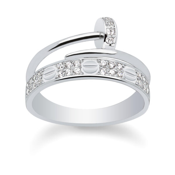 Pierścionek z cyrkonią srebrny gwóźdź