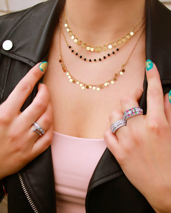 Pierścionek wykonany ze srebra próby 925, uszlachetniony warstwą rodu, ozdobiony cyrkoniami.