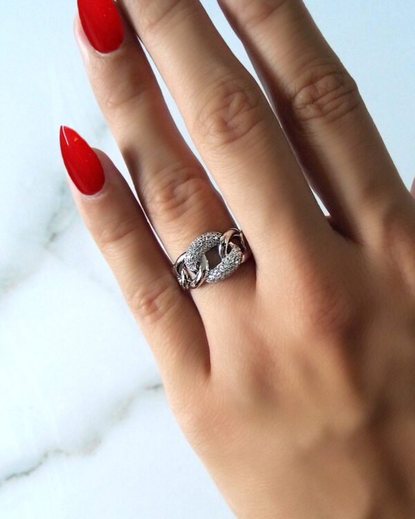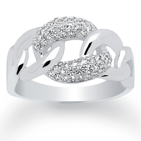 Pierścionek z cyrkonią srebrny łańcuch