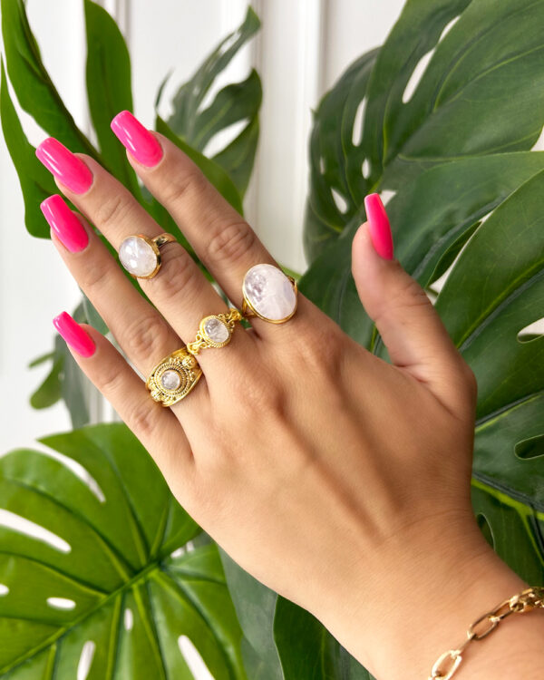 Biżuteria z kamieniem księżycowym to doskonały wybór dla osób poszukujących wyjątkowej biżuterii, która przyciąga uwagę i podkreśla indywidualność. Niezależnie od okazji – czy to formalne wydarzenie, romantyczna kolacja czy codzienna elegancja – ten pierścionek doda niezwykłego blasku i magii Twojemu wyglądowi. Jako mistrzowie jubilerstwa, dbamy o najwyższą jakość wykonania naszej biżuterii. Każdy pierścionek jest starannie ręcznie wykonany, aby zapewnić nie tylko doskonałe wykończenie, ale również trwałość i długotrwały blask.