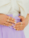 Pierścionek prześlicznie ozdobi dłoń, podkreślając wyrazistość oraz wiosenno-letni akcent Twojej stylizacji. Kolorowy pierścionek wygląda rewelacyjnie noszony samodzielnie lub w zestawieniu z innymi pierścionkami z emalią dostępnymi w naszym sklepie.