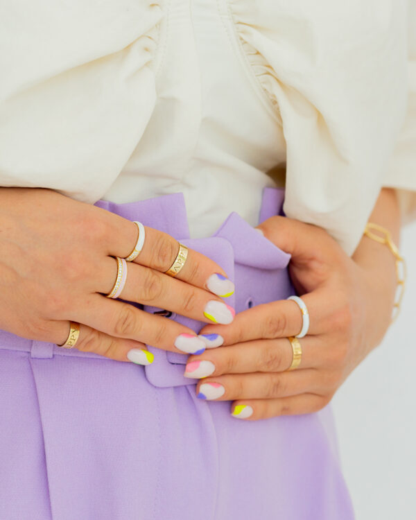 Pierścionek prześlicznie ozdobi dłoń, podkreślając wyrazistość oraz wiosenno-letni akcent Twojej stylizacji. Kolorowy pierścionek wygląda rewelacyjnie noszony samodzielnie lub w zestawieniu z innymi pierścionkami z emalią dostępnymi w naszym sklepie.