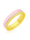 Pierścionek z różową emalią oraz cyrkoniami srebrny pozłacany