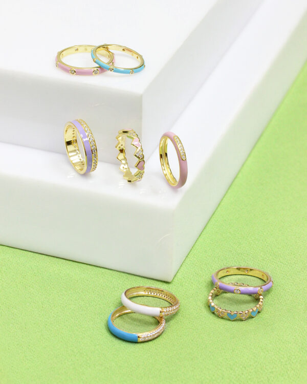 Pierścionek nadaje wyrazistości oraz wiosenno-letniego akcentu, prześlicznie ozdabiając dłoń. Biżuteria z kolorową emalią jubilerską stała się ulubionym dodatkiem blogerów oraz influencerów czyniąc ją prawdziwym hitem. Pierścionka nie może zabraknąć w Twojej kolekcji biżuterii.