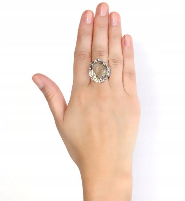 Topaz to wysoko ceniony w jubilerstwie kamień szlachetny z grupy krzemianów – bardzo twardy, ciężki i rzadko spotykany. Pierścionek zachwyca swoją przejrzystością i wielkością. Biżuteria idealnie uzupełni Twoją stylizację nadając jej Kobiecości i niesamowitej zmysłowości.