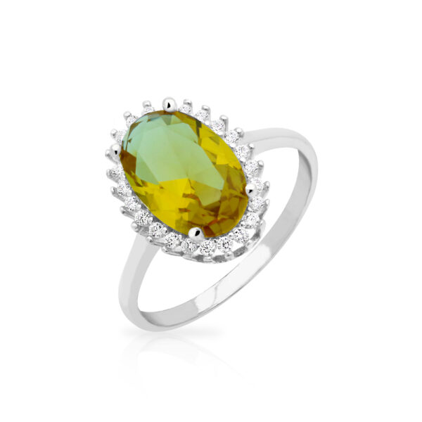 Pierścionek z zultanitem oraz cyrkoniami owalny srebrny elegancki