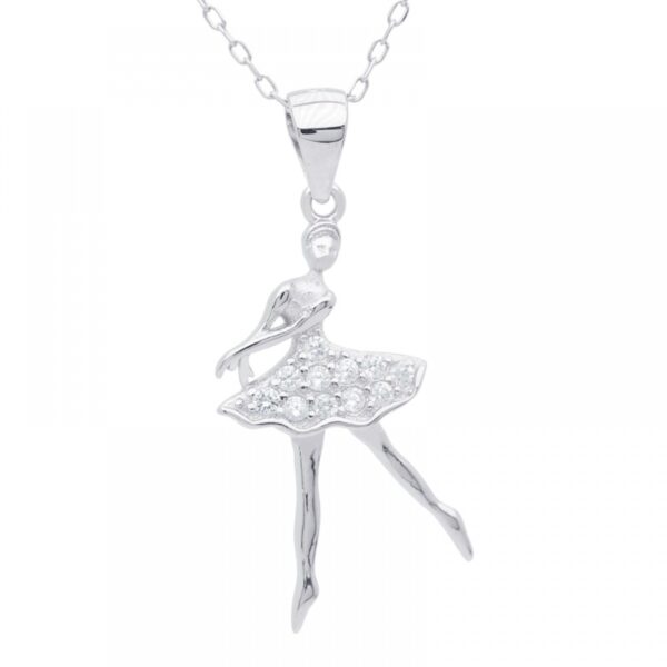 Zawieszka wykonana ze srebra próby 925, dodatkowo uszlachetniona rodem. Wielkość zawieszki: 30×15 mm. Zawieszka ozdobiona białą cyrkonią.