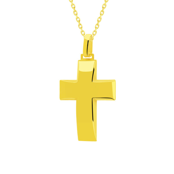 Zawieszka krzyż duży srebrna pozłacana. Wisiorek wykonany z najwyższej próby srebra 925 – bez dodatku niklu, nie uczula. Zawieszka dodatkowo uszlachetniona 3 warstwami 24 karatowego złota. Wymiary zawieszki wraz z zapięciem: 53x30mm.