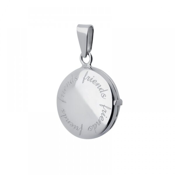 Zawieszka sekretnik ozdobiona wygrawerowanymi wzorami. Zawieszka wykonana ze srebra próby 925, dodatkowo uszlachetniona rodem. Wielkość zawieszki: 30 x 20 mm. Zawieszka bez łańcuszka.