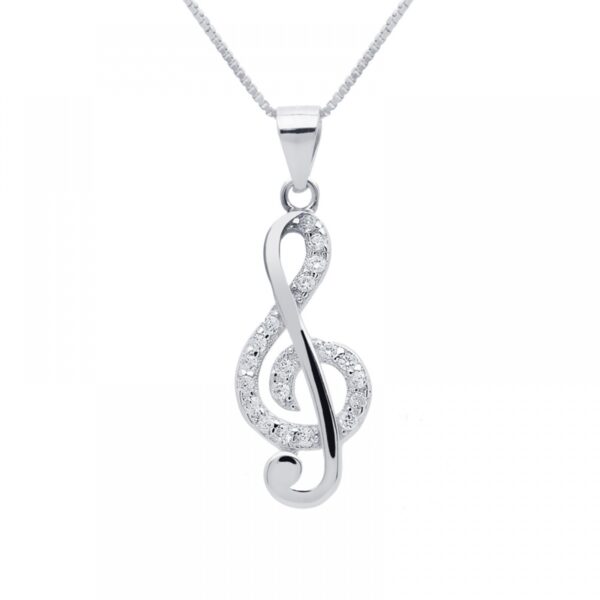 Zawieszka srebrna klucz wiolinowy z cyrkonią