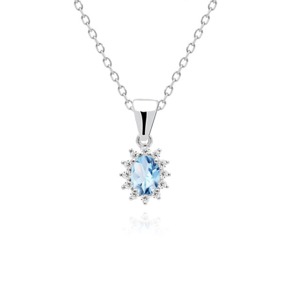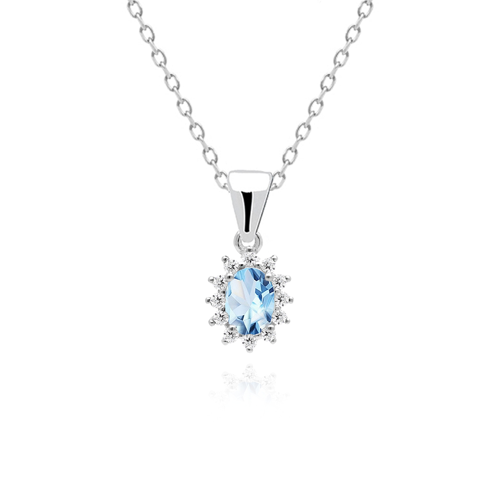 Zawieszka srebrna ozdobiona niebieskim topazem w eleganckiej oprawie wykonana z najwyższej próby srebra 925 – bez niklu, nie uczula. Biżuteria dodatkowo pokryta 3 warstwami szlachetnego rodu. Długość zawieszki: 18mm. Zawieszka ozdobiona naturalnym niebieskim topazem o szlifie owalnym o wielkości 5x7mm oraz cyrkoniami. Wyrób jubilerski wysokiej jakości wykonany przez mistrzów jubilerstwa z ogromną precyzją oraz dbałością o detale.
