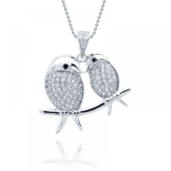 Zawieszka wykonana ze srebra uszlachetnionego warstwą rodu próby 925. Wysokość zawieszki 25×20 mm. Zawieszka ozdobiona białą cyrkonią.