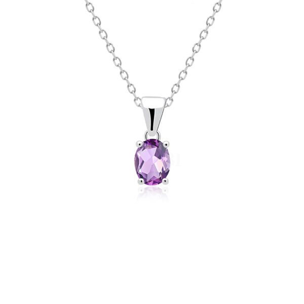 Zawieszka srebrna z ametystem subtelna wykonana z najwyższej próby srebra 925 – bez niklu, nie uczula. Biżuteria dodatkowo pokryta 3 warstwami szlachetnego rodu. Długość zawieszki: 15mm. Zawieszka ozdobiona naturalnym ametystem o szlifie owalnym o wielkości 5x7mm. Wyrób jubilerski wysokiej jakości wykonany przez mistrzów jubilerstwa z ogromną precyzją oraz dbałością o detale.