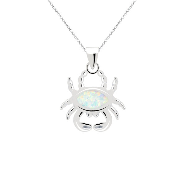 Zawieszka srebrna z opalem krab wykonana z najwyższej próby srebra 925 – bez dodatku niklu, nie uczula. Biżuteria dodatkowo uszlachetniona 3 warstwami szlachetnego rodu. Zawieszka o wymiarach: 20x25mm ozdobiona naturalnym białym opalem. Wyrób jubilerski wykonany z ogromną precyzją przez mistrzów jubilerstwa.