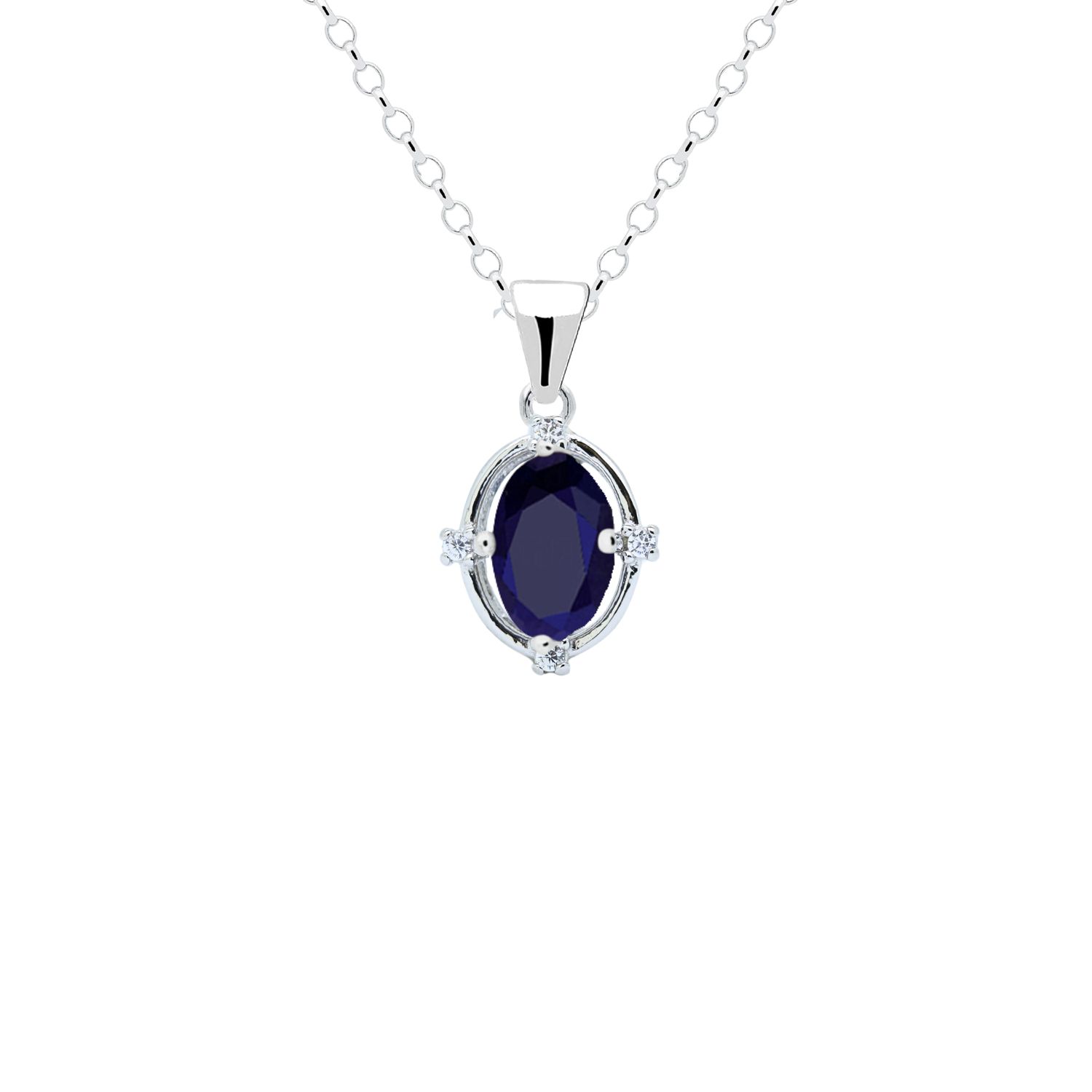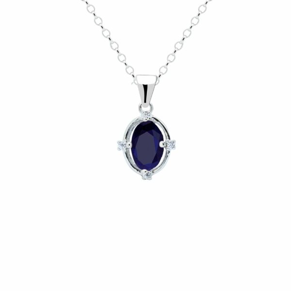 Zawieszka srebrna z szafirem to elegancka biżuteria o klasycznym kształcie, z owalnym, fasetowanym szafirem o głębokim, niebieskim kolorze. Wykonano ze srebra próby 925 – bez niklu, nie uczula. Dodatkowo zostało pokryte 3 warstwami szlachetnego rodu. Drobne, bezbarwne kamienie wokół szafiru tworzą subtelny kontrast, a polerowane ucho ułatwia zawieszenie na łańcuszku.
