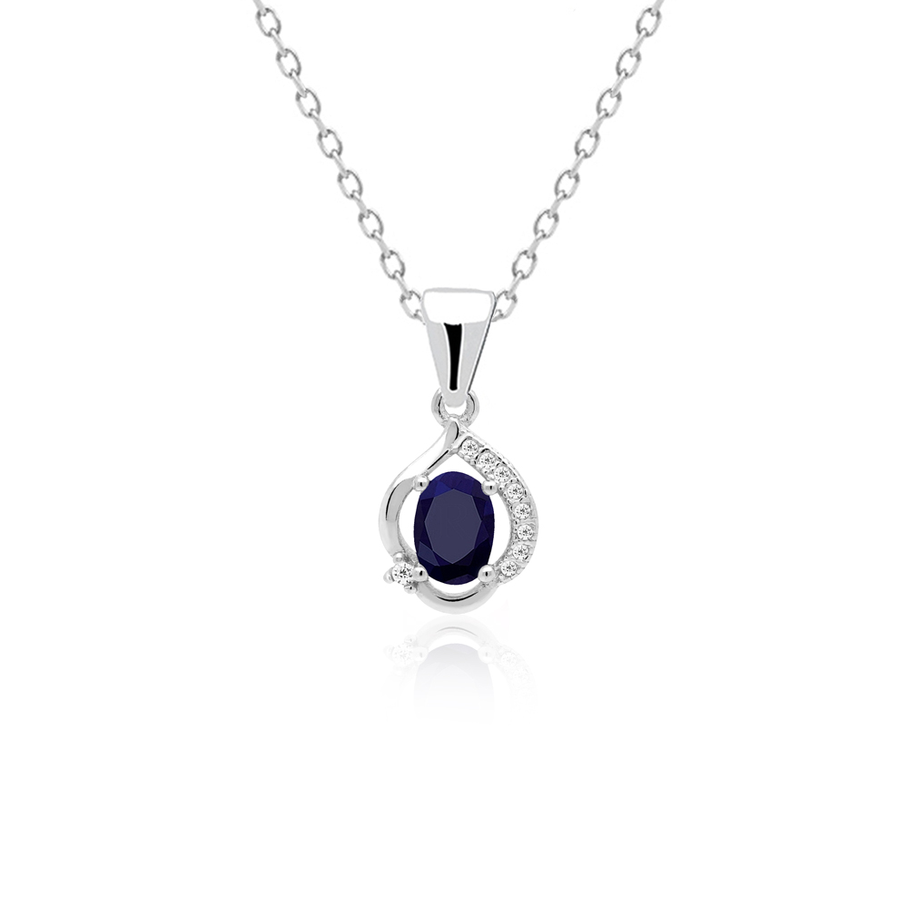 Zawieszka srebrna z szafirem w subtelnej oprawie wykonana z najwyższej próby srebra 925 – bez niklu, nie uczula. Biżuteria dodatkowo pokryta 3 warstwami szlachetnego rodu. Długość zawieszki: 19mm. Zawieszka ozdobiona naturalnym szafirem o szlifie owalnym o wielkości 5x7mm oraz cyrkoniami. Wyrób jubilerski wysokiej jakości wykonany przez mistrzów jubilerstwa z ogromną precyzją oraz dbałością o detale