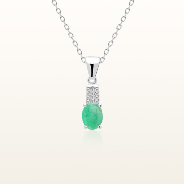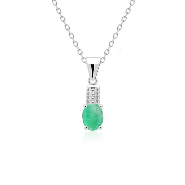 Zawieszka srebrna ze szmaragdem oraz cyrkoniami wykonana z najwyższej próby srebra 925 – bez niklu, nie uczula. Biżuteria dodatkowo pokryta 3 warstwami szlachetnego rodu. Długość zawieszki: 14mm. Zawieszka ozdobiona naturalnym szmaragdem o szlifie owalnym o wielkości 7x9mm oraz cyrkoniami. Wyrób jubilerski wysokiej jakości wykonany przez mistrzów jubilerstwa z ogromną precyzją oraz dbałością o detale
