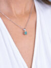 Zawieszka ze szmaragdem przepięknie ozdobi dekolt, nadając całości kreacji wyrazistości, elegancji a zarazem kobiecości.