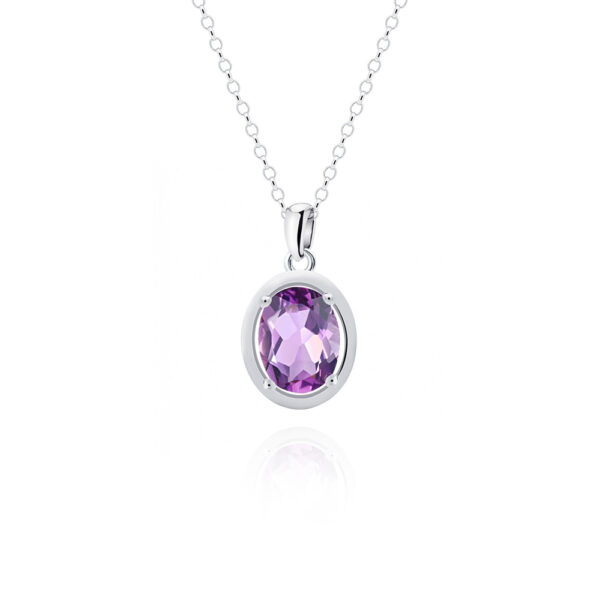 Zawieszka z ametystem srebrna. Biżuteria wykonana z najwyższej próby srebra 925 – bez niklu, nie uczula. Precioza dodatkowo pokryta 3 warstwami szlachetnego rodu. Wielkość kamienia: 6×8 mm. Zawieszka o wysokości 18 mm ozdobiona naturalnym ametystem o szlifie owalnym. Wyrób jubilerski wysokiej jakości wykonany przez mistrzów jubilerstwa z ogromną precyzją oraz dbałością o detale.