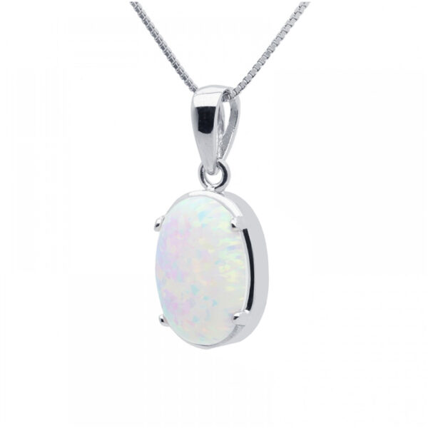 Zawieszka z opalem białym srebrna. Biżuteria wykonana z najwyższej Próby Srebra 925 – bez niklu, nie uczula. Zawieszka dodatkowo pokryta 3 warstwami szlachetnego Rodu. Wymiary zawieszki: 25×10 mm. Wielkość kamienia: 14×10 mm. Zawieszka ozdobiona naturalnym Białym Opalem.