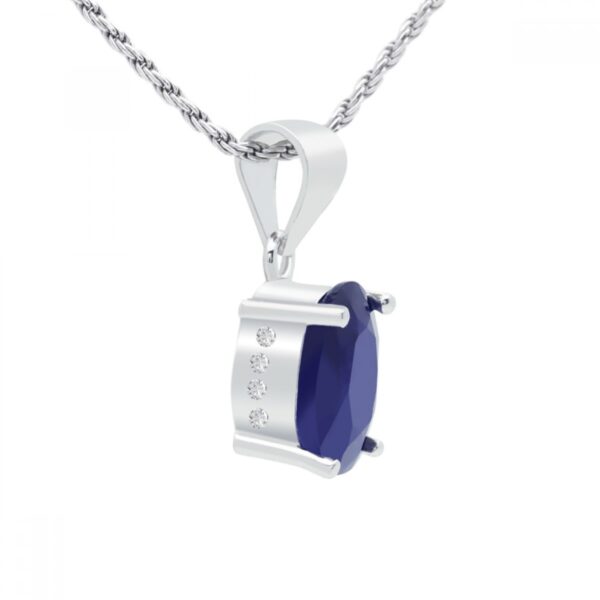 Zawieszka wykonana ze srebra próby 925, dodatkowo uszlachetniona warstwą rodu. Zawieszka ozdobiona naturalnym kamieniem szlachetnym- Szafirem afrykańskim oraz cyrkoniami. Kamień zawiera inkluzje. Wysokość zawieszki: 1,8 cm. Wielkość kamienia: 10×8 mm. Bez łańcuszka. Szafir jest odmianą korundu, najtwardszego kamienia po diamencie występującego w naturze. Bardzo trwały, idealny do noszenia na co dzień.
