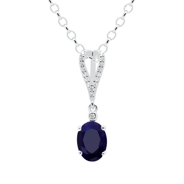 Zawieszka z szafirem owalnym oraz białymi cyrkoniami srebrna