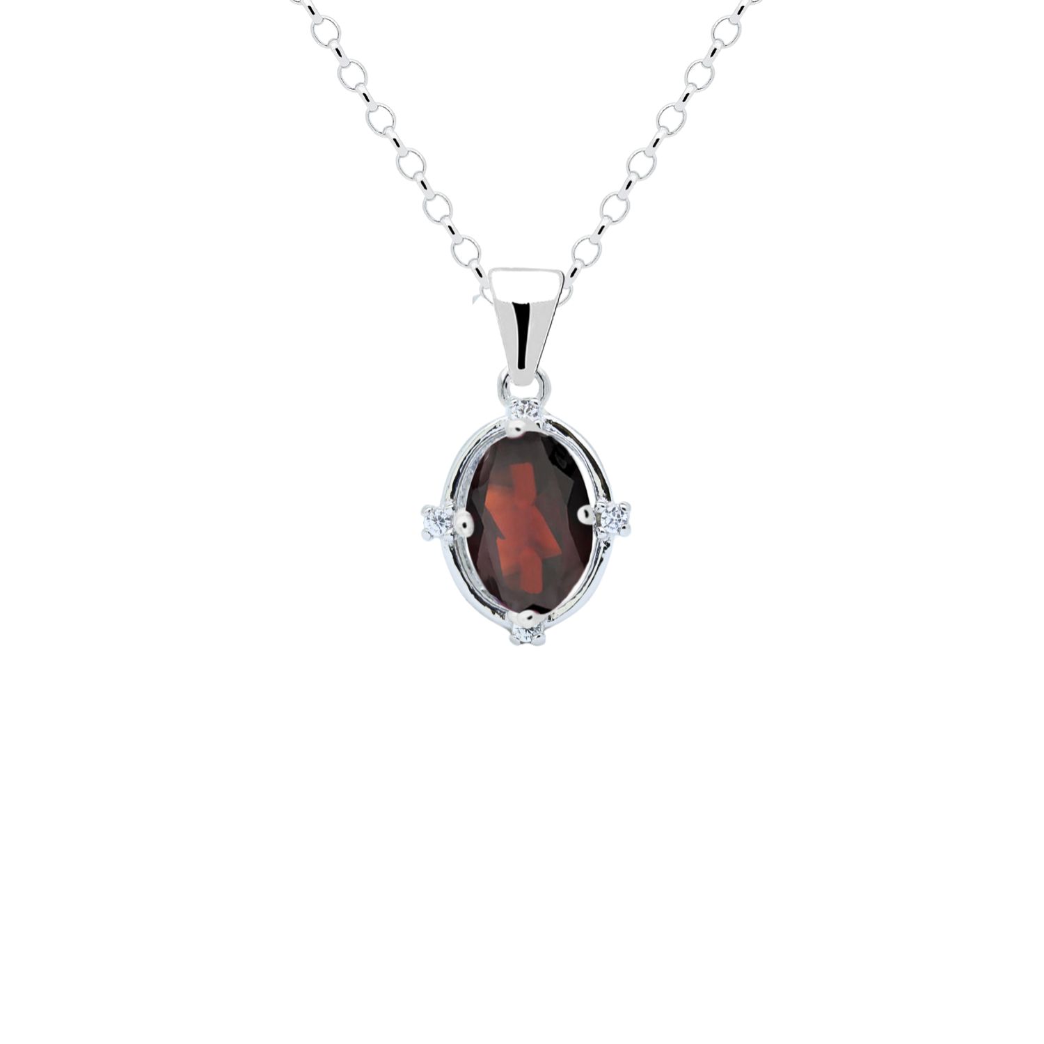 Elegancka zawieszka srebrna z granatem to klasyczna biżuteria o głębokiej, burgundowej barwie kamienia. Wykonano ze srebra próby 925 – bez niklu, nie uczula. Dodatkowo zostało pokryte 3 warstwami szlachetnego rodu. Owalny granat otaczają delikatne, bezbarwne akcenty, które dodają lekkości i blasku. Zawieszka jest sprzedawana bez łańcuszka i doskonale sprawdza się jako elegancki prezent.