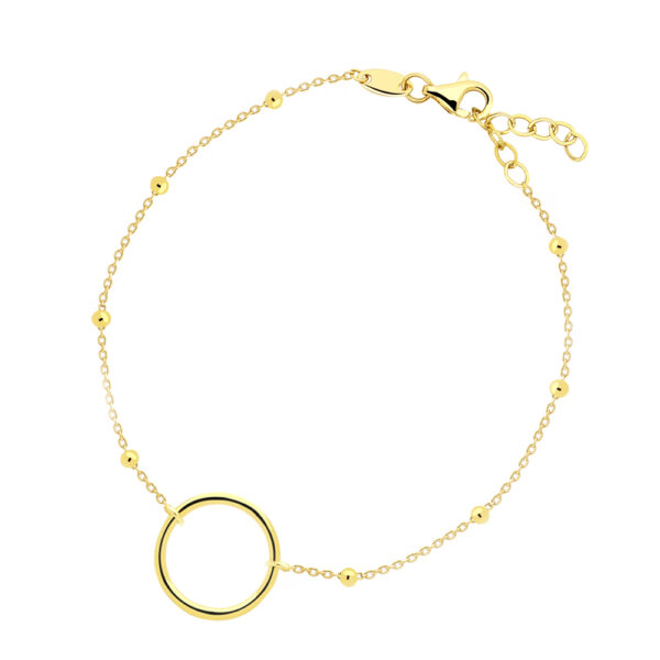 Bransoletka wykonana ze Złota Próby 585. Długość bransoletki: 18-20 cm. Bransoletka ozdobiona kuleczkami oraz kółeczkiem. Złota Bransoletka pięknie ozdobi nadgarstek. Bransoletka z kółeczkiem przepięknie podkreśli Twój styl nadając mu subtelności oraz niepowtarzalnej lekkości. Biżuteria świetnie nada się do codziennych stylizacji jak również na specjalne okazje.