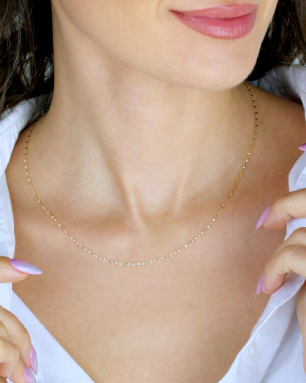 Ta delikatna biżuteria nie tylko podkreśli Twoją indywidualność, ale również doda klasy każdej stylizacji. Łańcuszek emanuje luksusem i dbałością o detale. Jego minimalistyczny design sprawia, że jest idealnym towarzyszem zarówno na co dzień, jak i na wyjątkowe okazje.