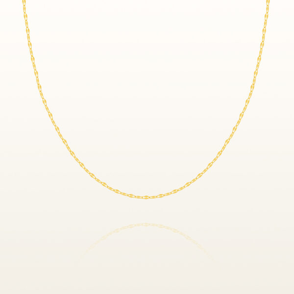 Złoty łańcuszek – splot blaszki wykonany ze złota próby 585. Długość łańcuszka: 44cm.