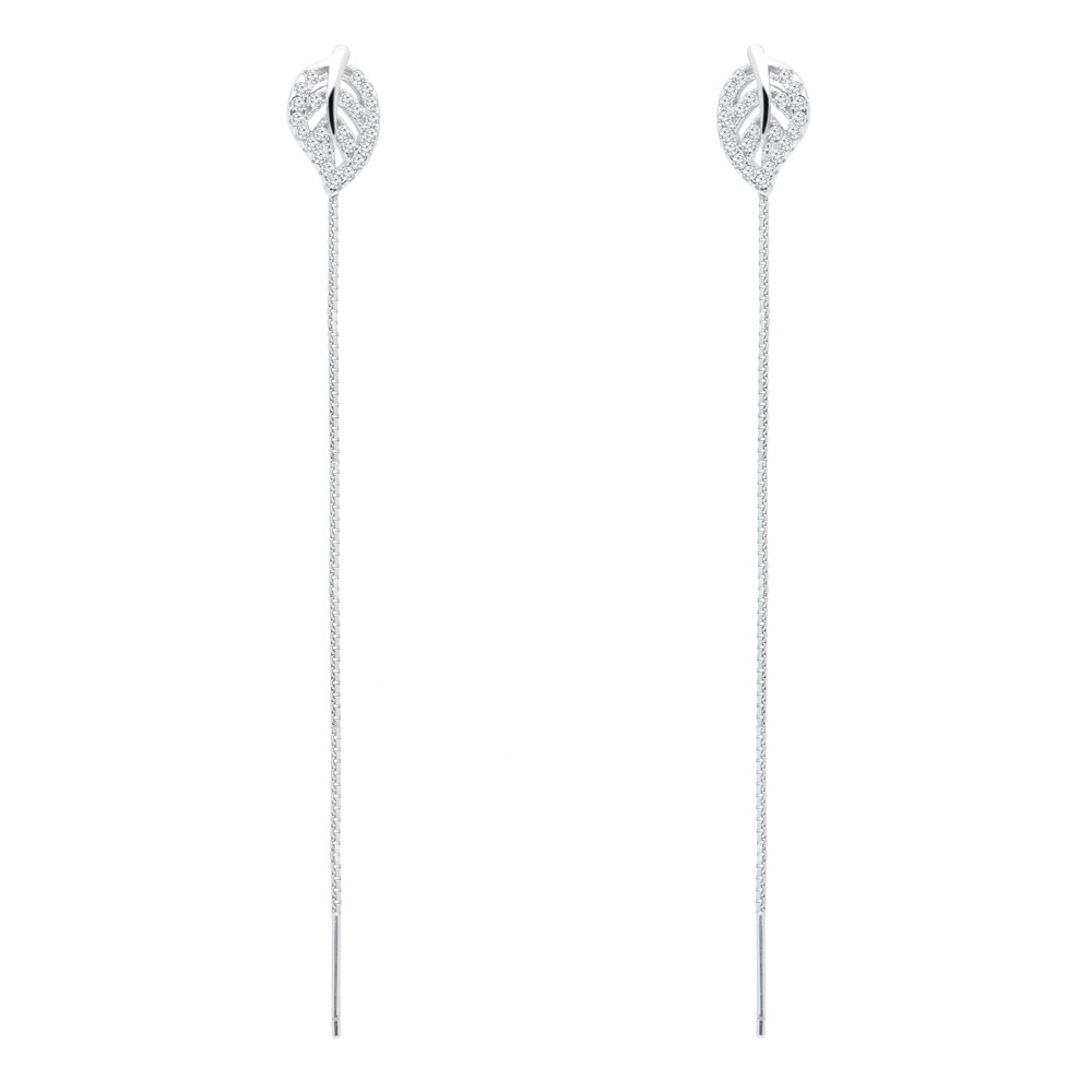 Kolczyki celebrytki listki srebrne przeciągane z cyrkoniami