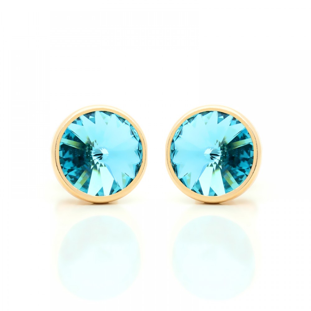 Kolczyki ozdobione kryształem SWAROVSKIEGO. Kolczyki wykonane ze srebra próby 925 oraz złocone 18 karatowym złotem. Średnica kolczyka 8 mm.