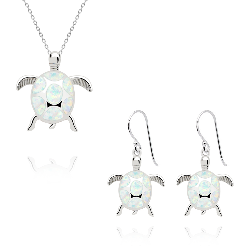 Komplet z opalem białym srebrny żółwie – kolczyki z zawieszką