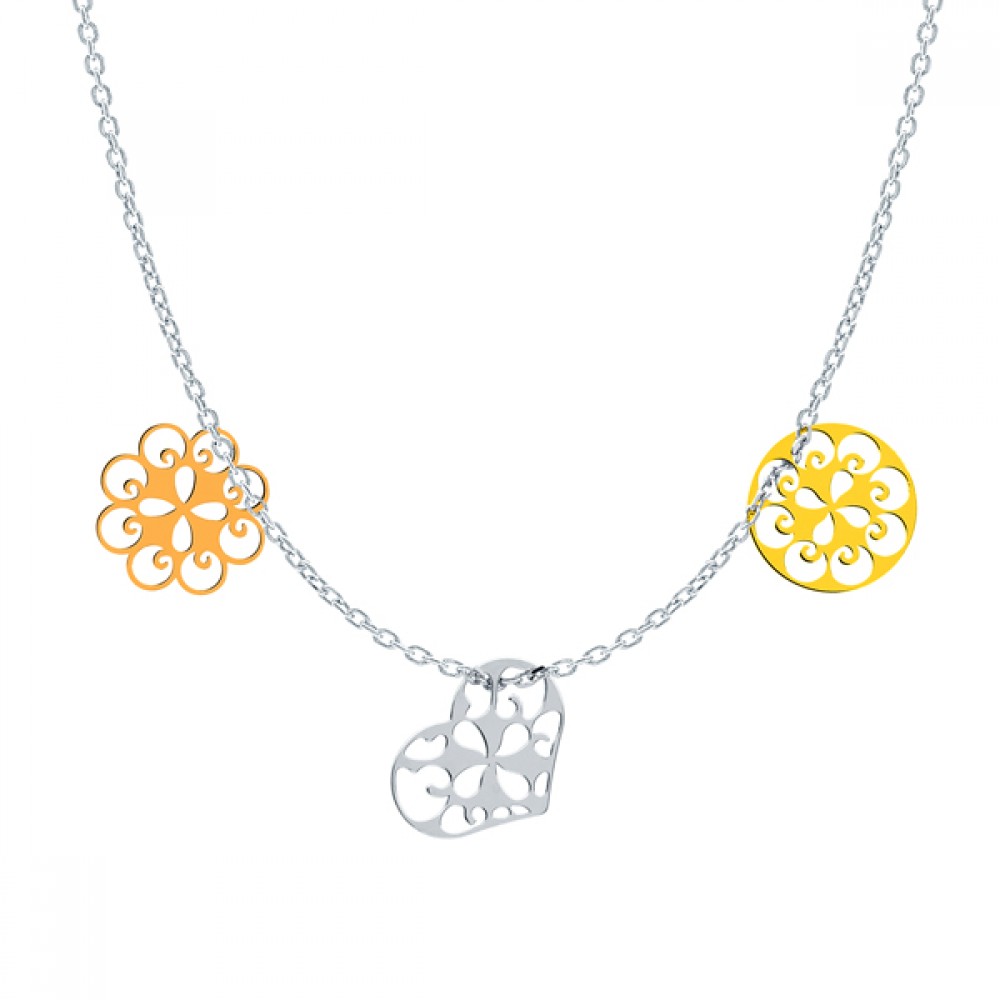 Naszyjnik celebrytka srebrna ażurowe serce, kółko i rozetka