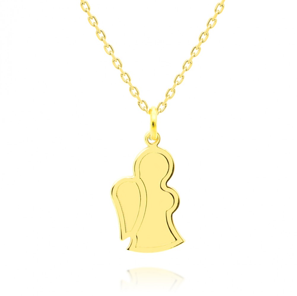 Naszyjnik celebrytka srebrna pozłacana z aniołkiem, łańcuszek ankier. Biżuteria modowa srebrna wykonana z najwyższej próby srebra 925 – bez dodatku niklu, nie uczula. Naszyjnik z aniołkiem pokryty 3 warstwami 24 karatowego złota. Wielkość zawieszki: 15×10 mm. Zawieszka anioł o gładkiej polerowanej przepięknie błyszczącej strukturze, zawieszona na łańcuszku o splocie ankier. Splot ankier jest jednym z najmocniejszych splotów, odpornym na zerwania. Długość naszyjnika jest regulowana i wynosi od 42 do 45 cm. Wyrób jubilerski najwyższej jakości wykonany przez mistrzów jubilerstwa z dużą precyzją oraz dbałością o detale.