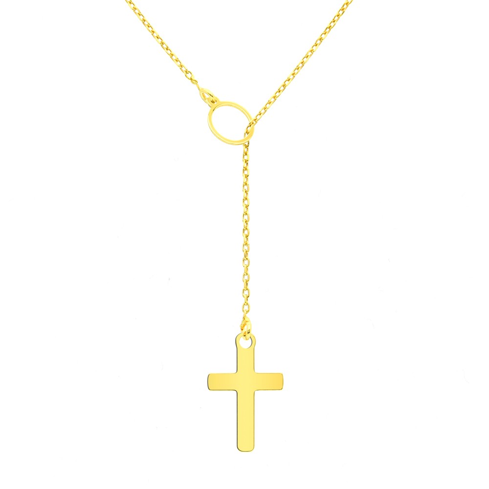 Naszyjnik krawatka z zawieszką w kształcie krzyżyka, wykonany ze srebra próby 925 oraz pokryty warstwą 18 karatowego. Wielkość zawieszki: 17×11 mm. Długość naszyjnika regulowana: 50 cm.